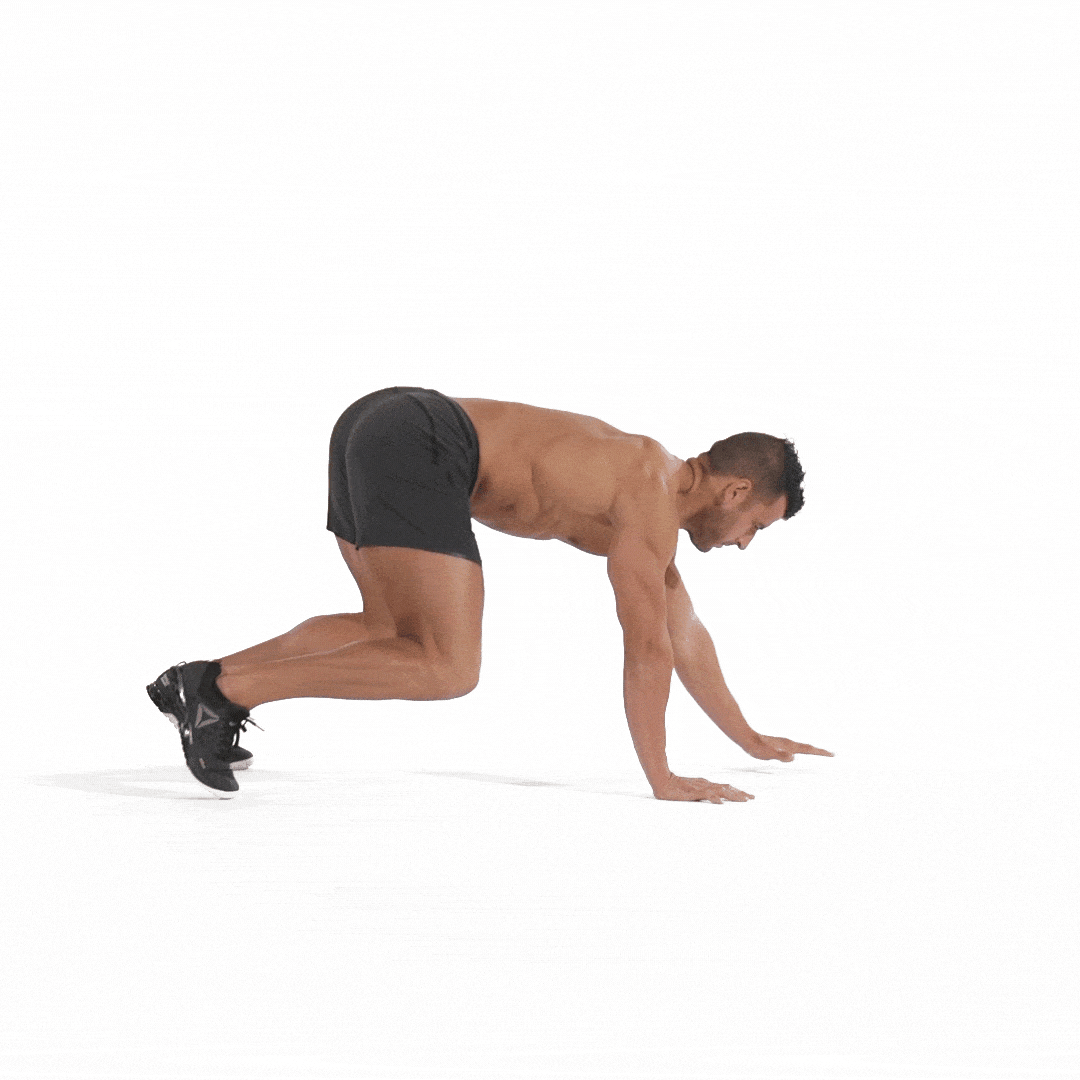 Improves core stability: The Bear Crawl with Shoulder Tap activates the rectus abdominis, transverse abdominis, and obliques to resist trunk rotation. Research from McGill University, Department of Kinesiology (2010) found that anti-rotation exercises significantly enhance spinal stability and reduce lower-back injury risk. Enhances shoulder strength and stability: Supporting body weight on one arm while tapping the opposite shoulder increases activation of the deltoids and rotator cuff muscles. A study by University of Wisconsin–La Crosse, Exercise Science Department (2014) showed that closed-chain shoulder exercises improve joint stability and neuromuscular control. Develops cross-body coordination: The contralateral movement pattern (right hand supports while left hand taps) improves neuromuscular coordination. Harvard University, Department of Neurobiology (2016) reported that cross-lateral movements enhance communication between brain hemispheres, improving motor control. Builds total-body functional strength: This exercise simultaneously engages the upper body, core, and lower body. According to National Strength and Conditioning Association (NSCA), 2018, integrated bodyweight movements are effective for developing functional strength applicable to daily and athletic activities. Improves balance and proprioception: Shifting weight during the shoulder tap challenges balance and body awareness. Research from University of Queensland, School of Human Movement Studies (2012) found that unstable, multi-joint exercises significantly improve proprioceptive ability. Increases metabolic demand: Maintaining a crawling position with added shoulder taps elevates heart rate and energy expenditure. A study by American Council on Exercise (ACE), 2015 showed that compound bodyweight exercises produce higher metabolic cost than isolated movements.